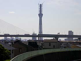 レインボーソフトへは新小岩から歩きで(普通の人は歩かない。2.5kmあるから)途中の平和橋から水道管の上に見えるようになった。497mになったそうで総武線の錦糸町駅付近の車窓からも迫るように見える。最近は荒川河川敷の左岸で練習することもあり、一番近いところは直線距離で3.1km。結構にわかカメラマン(年寄り)が多い。 10.22にライトアップのテストをしてるということで、レインボーソフトが入っている共栄さんの屋上に行ったが反対側だったようで見えなかった。 富士山が見える季節になったので、今度は富士山と撮るか。 |