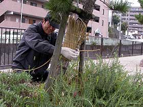保土ヶ谷宿の松並木の下草刈と菰巻を行った。wikipediaを見ると「こも巻きに捕まったマツカレハはわずかであり、害虫の天敵となるクモやヤニサシガメが大多数を占め、害虫駆除の効果はほとんど無くむしろ逆効果であることを証明した」とあるが風物詩として行った。国道一号沿いであり、市街地であるため農薬の散布ができない。今回は松の幼木が目立つので、愛護会員の発案で(自主的)に幼木に番号札をふっていたので、草刈ながらお手伝いした。全部で24本あり、盗まれず、育つのか? 赤松の育て方を見ると、あるていど育つまでほっぽってよいようだ。 |