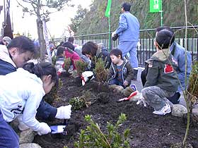 花壇部分約200mに花苗などの植栽式が保土ヶ谷区(保土ヶ谷土木)の主催で行われた。近所の小学校から児童と保護者が参加。関係者や我々愛護会員を入れると200人超となり、月例の雑草取りや掃除のときもこの人数ならすぐ終わるだろうなと思ったのは私だけではない。約1000株が植えられ、花の季節になるのが楽しみだ。道路はまだ整備中で、箱根駅伝までにはある程度、完成させたいらしい。ただ現在までのここ2年間の進捗からすると厳しいように思うが・・・ |