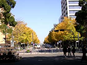 日本大通のイチョウの紅葉がほぼ盛りである。まだ少しあおいイチョウも見られるので、あと数日で黄色が最高ではないだろうか。写真は横浜スタジアム方面から海側方面に向かって写したもの。道路脇には冬バージョンのイルミネーションが準備されるはずなのだが。まだ設置されていない。しかし、まだ暖かいので師走という感じがしないが、忘年会のお誘いがかかるようになり、まったく関係なくなったボーナスの話題も聞く季節である。 |