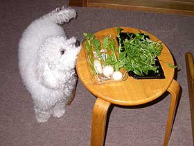昨日「春の七草」セットが保土ヶ谷駅前に売っていたので398円で買ってきた。我家の近所とトレーニングコースの一部でも、セリとハコベは手に入る。田舎なら川の土手を歩けば手に入るだろうが、ちゃんと間違えないで揃えられる自信はない。我家のワンコも興味津々であるが、全部葉っぱなのでさすがに取って喰うことはしない。暮れからたまに一緒にトレーニングしている。長距離だと私の方が速いが、本日は5kmを32分で走った。旧権太坂(70m)も同じスピードで駆け上がるので、この上りは私も気合を入れて駆け上がった。慣れてきたらもう少し距離を延ばそうと思っている。現在でも私以外の家族には走ると言って手が負えなくなった。 |