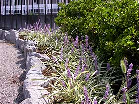 松並木プロームナードの瀬戸ヶ谷橋(R1と旧東海道の分岐点付近)に区役所が植栽したヤブランの花が咲いた。咲くとは思っていなくて、名前を知らなかったがたまたま名前が分った。園芸植物には疎いのでgooってみたところ、フイリとは「斑入り」(IMEでも変換でたのにはビックリ)つまり「斑入薮蘭」。漢字で表記した方が意味が分る。日本原産とのこと。植物学で斑とは葉っぱに白い線がはいっているもので常識のようだ。斑は「はん」と読んでしまう。 英語ではVariegatted Plantsとのこと。 |