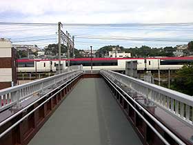 2:00から10分間通行止めにして架けると案内があり、てっきり本日から渡れるのだろうと思っていた。写真のように陸橋は架かったが、階段ができていない。現場監督風の人に聞くと、「通れるようになるのは10月中か・・・」と曖昧な回答だった。区役所の説明と違うような?私がちゃんと聞かなかったのか? 前の陸橋が撤去される前にプレートを写していて、最初に建造されたのが1969年、86年に改造、今回で3回目となる。 |