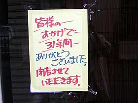 昨日(19日)で我家から100m程度のところにあったマートエミネンスと言うお店が閉店して、かなり不便になると家内が嘆いている。ちょっとした買物はコンビニでできるが往復で1kmとちょっと距離がある。今後は保土ヶ谷駅まで行かなければならず、車も無くなったので買いだめもできない。良い運動になって健康にはよいかもしれない。 31年営業したとあり、開店した頃のこのあたりは薮原だったのではないだろうか。 |
