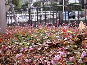 保松とは「保土ヶ谷宿松並木水辺愛護会」の略で、本日は月例草刈であった。プロムナード(約300m)の花壇部分がほぼ完成したので、草刈範囲も広くなり結構な肉体労働になってきた。写真は一番戸塚寄りの花壇で、雑草であるポリゴナム(姫弦蕎麦)咲いている。雑草ではあるが綺麗に咲いているのでそのままにした。 まわりは昨年はススキが見られたがアキノキリンソウなどが咲いている。この人出では1日では終わりそうにない。保土ヶ谷土木にやって戴こうということで終了したが約2時間の作業だった。 |