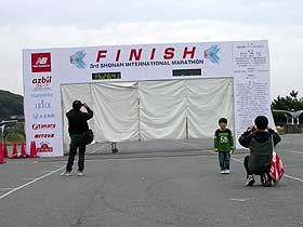 5時起きして、グリーン車で二宮へ行く。大船あたりからグリーン車も座れない状態。ホームでは積み残しもあるようだった。雨が降り出し、いやな大会となった。駅からの歩きも混雑し、着替えてスタート地点に行くまでにも混雑し、予定よりかなり後からのスタートとなった。雨が降っていたがホノルルより寒くなかったし、この程度なら記録更新もと思ったが甘かった。18km、21km地点で小西さんの応援に励まされ、雨で足がふやけていたが、25kmまではまぁまぁだった。ただコースが単調、延々と防風林がつづき荒川の河川敷より単調な風景で厳しいこと。分ってはいたものの37km先でゴールを右に見て遠ざかる精神的な苦痛は想像以上のもので、ラスト10kmは過去最低の73分もかかり、4:37:53とこれまた最悪の記録で終わった。レース後も駅まで歩き、家に帰り着いたとき万歩計は7万歩近くになっていて、今日だけで53kmは人力で移動したようだ。 これで5回フルを走ったが、最悪の運営で同じコースならもう湘南は走らない。あと国際と冠されているが外人と確認できたのは14~15km地点でトップで行き違ったエリック・ワイナイナだけ。 |