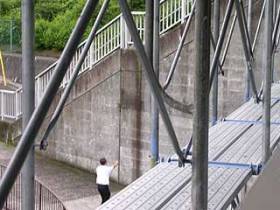 国道1号拡幅工事のため夏休みに入ったと思った当局が、本日の1:00にガード(陸橋)撤去した。最近夏休みは自由裁量らしく岩崎小学校は25日からで、よく調査しなかった担当は焦っていた。撤去されたガードのプレートによると1969年に建造され1986年に改造、今回は道幅が広くなり新規となる。 9月中頃に設置予定とのことで、色など市民の意見が反映されている。 |