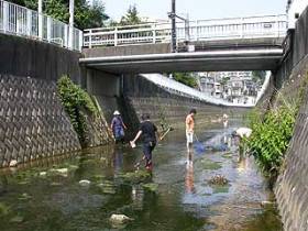 松並木愛護と町内会で、瀬戸ヶ谷中橋から八幡橋までの約300mのゴミさらいを行った。自転車などの粗大ゴミが多くの人が気になっていたが、約2時間弱の作業で成果を得た。自転車2台を含む軽トラック一台分程度の成果だった。ただ、今回清掃した上流部、下流部のゴミが気になる。 清掃中に青大将が出てきたのにはビックリした。町内会の方によると瀬戸ヶ谷中橋から上流200mの間に4、5匹はいるとのこと。 |