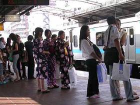 7.20の方が規模が大きいと思うが?。本日も花火大会がある。HPを見ると19時からで、まだ14時とくそ暑いなか写真のように、浴衣を着た女の子がうろついていた。本日は横浜スタジアムでオールスータもやるそうで、どうりで阪神と中日の応援団がいたのかと理解できた。ということで本日は明るい内に仕事を切上げて関内を後にしないと混雑してしまう。 メディアアートでは特等席(内緒)で見物するとのこと。 |
