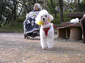 ワンコのことで、2月末にようやく狂犬病の注射を終え公園デビューを果たしていたが、黄色いカラーリングのため黄色ちゃんと呼ばれ、すでに有名になっている。私もこのところ自宅兼会社に籠もっているため、散歩をさせているがちょうど幼稚園のこどもが帰る頃に出くわし、3日も続くと顔見知りになってしまった。 ワンコも目立ち、私のようなおじさんが平日散歩させているのは珍しいので「会社には行かないの」と不思議がられ、『会社はあそこで、ワンコも会社で飼っているのだ』(本当かというとちょっと違うが、嘘ではない)、「あそこはお家だよ」、『会社もあるんだよ』、「????」帰って母親になんというのか・・・ こどもたちが追っかけ回すが、我家のワンコの方が速い。多分50mを7秒で走れるのではないだろうか、凄いのは坂道でも同じ速度で駆け上るため、私も付いて行けない。 |