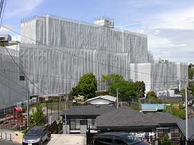 住んでいるマンションの大改修工事が始まり、全館が写真のように覆われた。まだ泊り込みの作業が続いているため、私としてはさほど不便には感じないが、家内は天気の状態がわからないので、早く工事が終わって欲しいと言っているが7月末までこの状態が続くとのこと。通路や階段は真っ黒なシートが貼られ、目が悪い私には注意しないと、一段間違えて危険だ。エレベーターに乗る癖がないので、工事終了まではエレベーターを使ことにしなければと思うが、つい階段に向かってしまう。 |