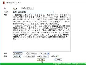 先週までが嘘のように涼しくなった。一時は「今日は30℃か涼しい」と気温の感覚が異常になっていた。本ブログは手で入力していたが、システム化しました。PHPとMySQLでMovableTypeといった本格的なblogシステムではないが、日記に限れば機能を限定している分、操作性は優れている。RSS配信は対応していないが今後拡張して行く予定。 地図表示は標準で実装しているのが特徴。写真をクリックしたら拡大写真を表示する機能が必要であることがわかった。 |